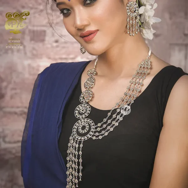 Classified : Long Necklace & Ear rings Material: Indian Rupa + Bronze