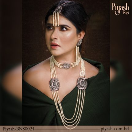 Length: Multi-layered necklace with a choker-style upper section and longer strands for a regal look